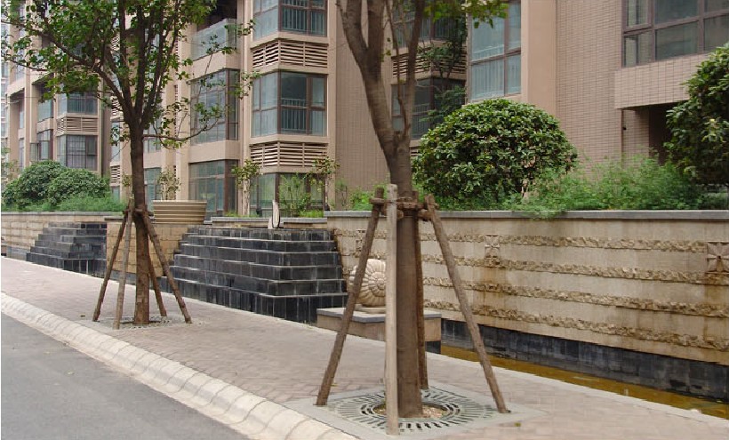 該小區(qū)結(jié)合現(xiàn)代國際先進(jìn)的設(shè)計(jì)理念,是景觀風(fēng)格與建筑的和諧統(tǒng)一,各種形式的水景,增加小區(qū)活力;植物景觀以當(dāng)?shù)刂参餅橹鳎嵘参锍苫盥剩訌?qiáng)人們的歸屬感。
