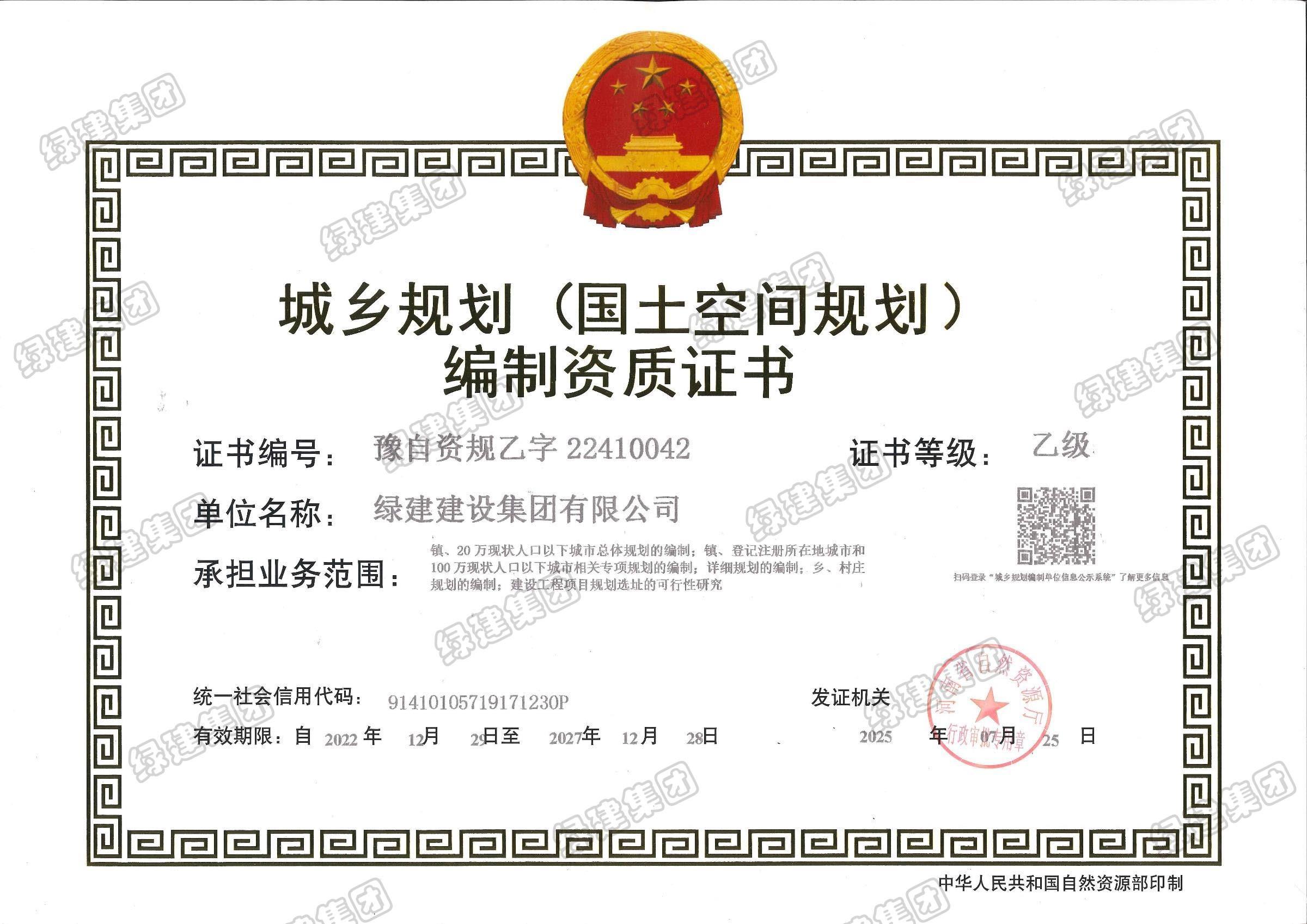 城鄉規劃編制乙級資質