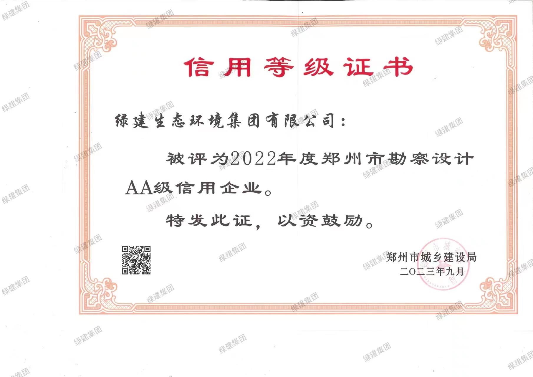 2022年度鄭州市勘察設計AA級信用企業-鄭州市城鄉建設局(1)