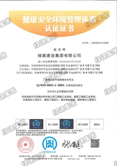 HSE健康安全環境管理體系證書(0001.1-2001)