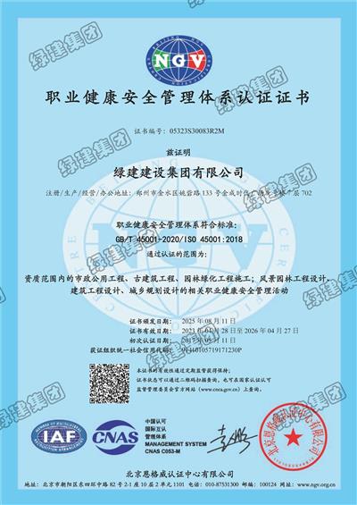 職業健康安全管理體系認證證書